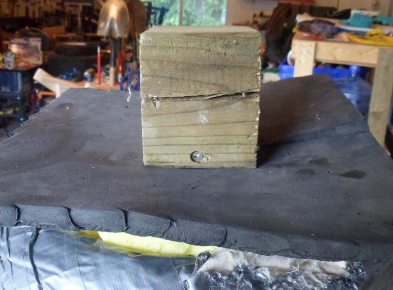 I then filled in the top of the futon, taped it over, and then added a foam collar under the block of wood. This helps to keep the head from wobbling too much. This was taped in place as well.