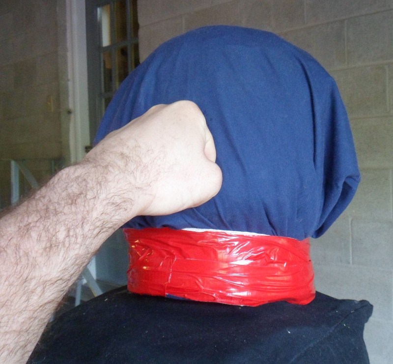 If one were not offended by the site of duct tape, one could stop here and have a perfectly serviceable free-standing bag. However, I wanted something that looked a little more professional and I also wanted to have a separate head on the dummy.