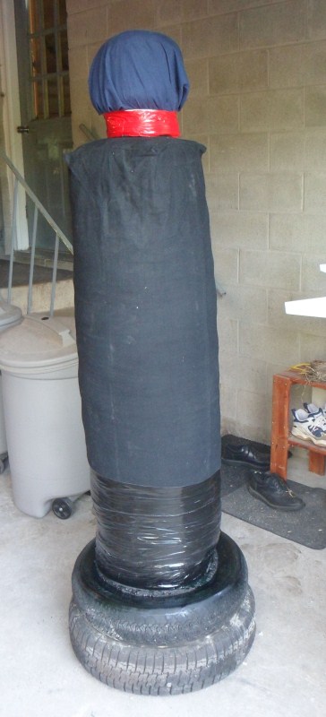 I already have a BOB and a hanging heavy bag in my hojo, so technically I don’t need any more striking equipment. However, for practising against multiple opponents and for the purposes of developing something inexpensive that might be useful for my fellow martial artists, I decided to see what I could make. All in all, I am quite pleased with the results.