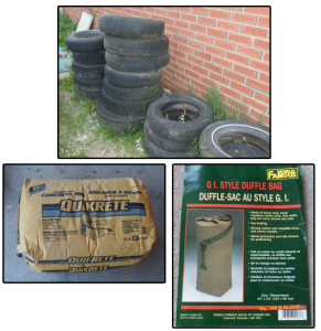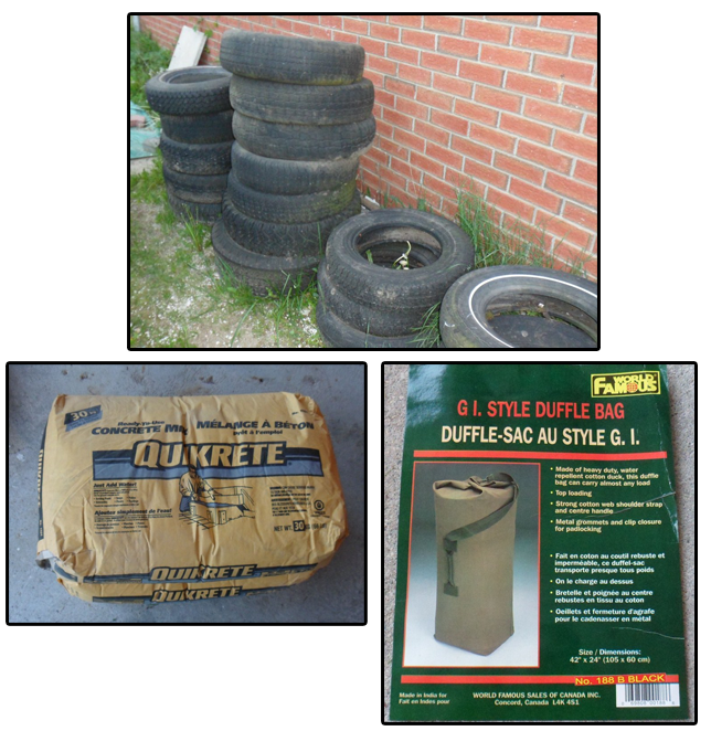 * Large G.I.-style top-loading duffle bag (42″ x 24″). This can be obtained for $20 or less from an army surplus store. The strap should be cut off.